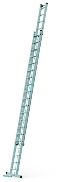 "A magasság egyszerű és kényelmes függőleges állítása optimálisan használható a nagy magasságokhoz. Magassága 280 mm-es lépésekben könnyen és kényelmesen állítható a műanyagkötéllel és a kerekek segítségével létrafoktól létrafokig. Biztonságos záródás automatikusan működő kampókkal. Felső létraelem görgőkkel szerelve. Vezető görgők kopásálló, falat