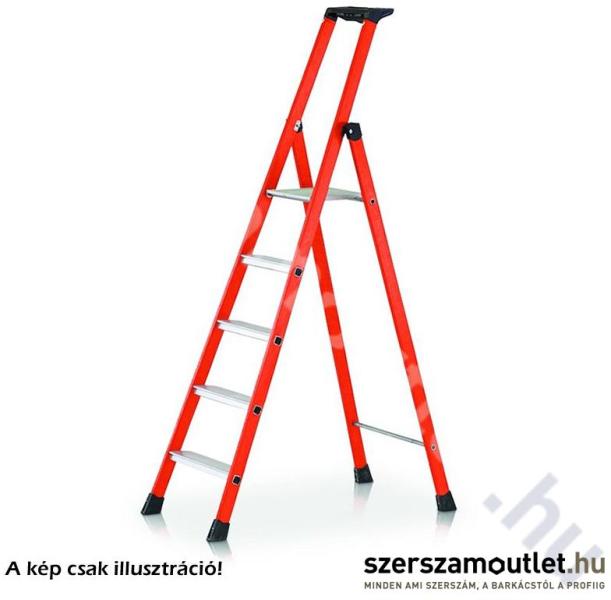 ZARGES EFAmix S egy oldalon járható állólétra, 5 fok A speciális létra a villamos környezetben végzendő összes munkához. 80 mm mély könnyűfém lépcsők csúszásmentes bordázattal. Elektromos berendezéseken végzett munkákhoz ajánlott, mivel az üvegszál erősítésű műanyag szárprofilok kiválóan szigetelnek. Biztonsági dobogó (250 x 250 mm). A szerszámok és alkatr