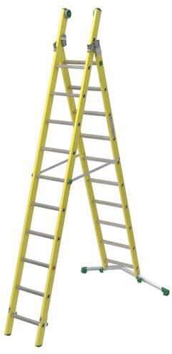 Üveglaminát létra a fokozott kockázatú elektromos kisüléses üzemekbe. A létra tanúsítvánnyal rendelkezik, és megfelel az EN 131 és az EN 61478 szabványoknak, I. kategória - 30.000 Volt. Összeállítható álló kettes létraként vagy támasztó létraként. Stabilizációs teleszkópos 83 cm – 128 cm széles bázis, műanyag csúszásgátló talpak. A létra felső részében k