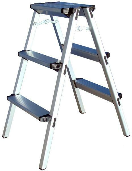 Anyag : alumínium Maximális terhelhetőség (kg) : 150 kg Legfelső létrafok magassága (cm) : 68 cm Saját tömeg (kg) : 2,5 kg Fokok száma : 3 Kitolható/variálható : Nem Kétágú : Igen Támasztható : Nem Nyitott magasság (cm) : 68 cm Szélesség (cm) : 41 cm Létrafokok mérete (cm) : 39 x 8 Létrafokok távolsága (cm) : 23 cm Csomagolási méret (cm): 73,5 x 34 x 17
