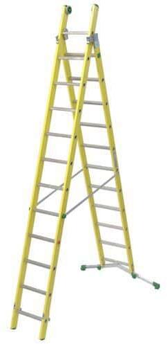 Üveglaminát létra a fokozott kockázatú elektromos kisüléses üzemekbe. A létra tanúsítvánnyal rendelkezik, és megfelel az EN 131 és az EN 61478 szabványoknak, I. kategória - 30.000 Volt. Összeállítható álló kettes létraként vagy támasztó létraként. Stabilizációs teleszkópos 83 cm – 128 cm széles bázis, műanyag csúszásgátló talpak. A létra felső részében k