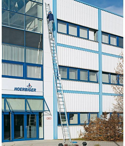 Nagy magasságban végzett munkákhoz: A szállítási méret optimalizálása során 16,35 m-es munkamagasságok érhetők el a magasság kényelmes beállításával függőleges irányban. Elkülönített magasságállítás a középső és felső létraelemnél két külön kötéllel. Magassága 280 mm-es lépésekben állítható létrafoktól létrafokig. Vezető görgők kopásálló, fal