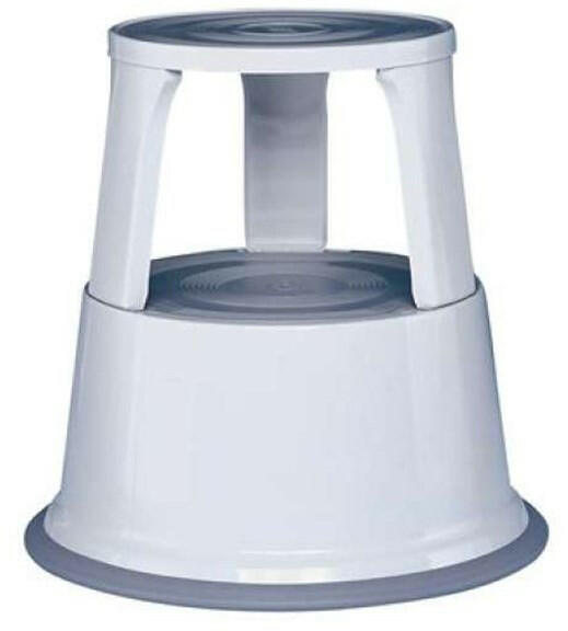 Zsámoly WEDO gurulós acél világosszürke Erős acélból készült, 3 db görgőn gurul, függőlegesen kapott terhelés hatására a görgők visszahúzódnak és megfékeződnek, lefékezett állapotban a zsámoly stabil állófelületet biztosít. Szerelést nem igényel, használatra készen szállítjuk Dobogó magassága: 44 cm, fokok száma dobogóval együtt: 2 Magasság (használaton