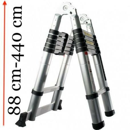 Teleszkópos létra Magasság egyágú létraként: 440 cm Magasság kétágú létraként: 210 cm Magassága összecsukva: 88 cm Létrafokok száma: 2x7 Szélesség felül: 47,5 cm Szélesség alul: 47 cm Stabilizáló talp szélessége: 68 cm Belső szélesség: 32,3 cm Maximális teherbírás: 150 kg Mindig győződjön meg a megfelelő dőlésszögről, és a biztonságos elhelyezésről miel