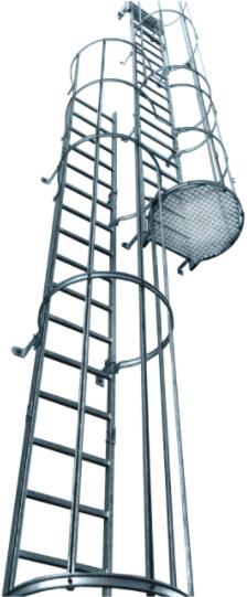"Rögzített létra, osztott kivitelEN-14122 szerint Gépi berendezések helyhez kötött létrái (10 m szintkülönbség felett) Az egyes létraszakaszok maximális magassága 6,00 m lehet. "