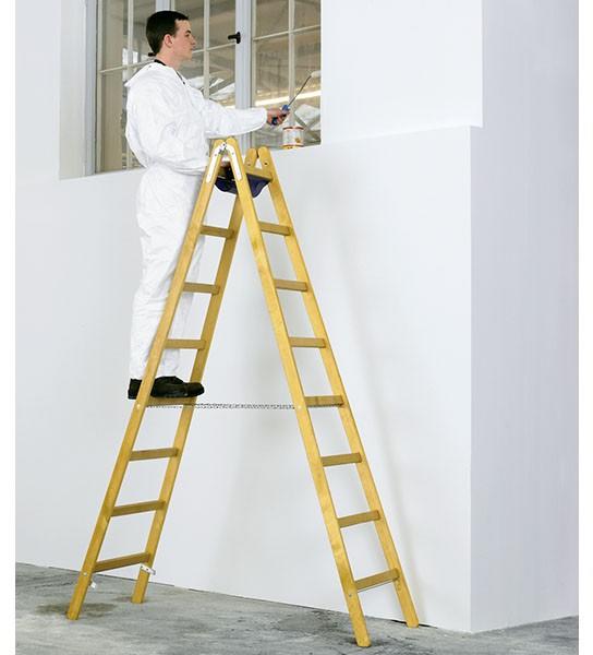 A festők kedvenc létrája: kellemes a fogása bármilyen hőmérsékleten. A létraszárak gondosan válogatott, kiváló minőségű sárgásbarna festésű fenyőfából, a lépcsőfokok bükkfából. Nagy eszköztartóval. Szétcsúszás elleni védelem két horganyzott csomózott lánccal. Feszítő csavar a további biztonságért és stabilitásért. Alacsony hővezető képesség - ezált