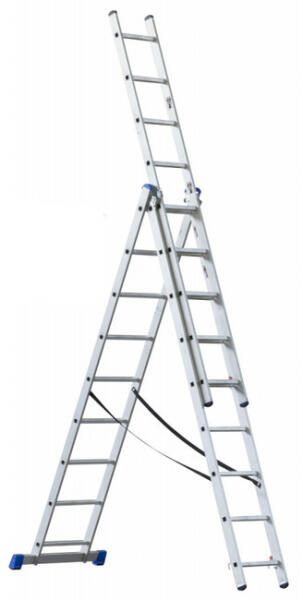 3 részes létra 3x14 10.1m Univerzális alumínium létra, otthoni vagy professzionális használatra. A létra 3 részből áll. Az első két része lehetővé teszi az A-típusú létra összerakását, a harmadik, lecsatolható részét egyszerű létraként használhatjuk. Mindhárom rész csatlakoztatásával 10,1 m-es magasságot érhetünk el. Technikai paraméterek:Állítható magasság