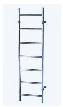 "Rögzített szerelés a BGV D 36, DIN18799-1, DIN 14094-1 és a DIN EN ISO 14 122-4 szerint. Rögzített létrák hátvédő korláttal a BGV D36 szerint, megfelel DIN 14094-1-nek és 18 799-1. résznek. Létraszélesség: 520 mm. Falitartó különböző fali távolságokkal, 600 mm-ig választható. A fali tartók egymásra max. 2,00 m-re vannak. Azonban minden létraelemet legalább 2 fali tar