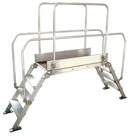 Az áthidaló létra a munkahelyi berendezéseken történő biztonságos áthaladásra szolgál. Szilárd alumínium szerkezet hét fokkal a létra mindkét oldalán. A fokok 15 cm szélesek, és csúszásgátló bevonatúak. A felület mérete 120 x 53 cm és csúszásgátló bevonatú melamin faforgácslapból készült. A kétoldali védőkorlát magassága 1 m. Alkalmas a talajhoz rögzítés