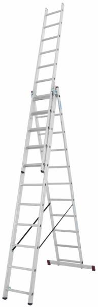 Körben bordázott létrafokok Az acél vezetőprofilok a létra kényelmes kitolását biztosítják Kiegészítő kitámasztó a biztos állás érdekében Csúszsásmentes lábdugók Az önreteszelődő kampók megakadályozzák a létra szétcsúszását használat vagy szállítás közben Terhelhetősége 150 kg