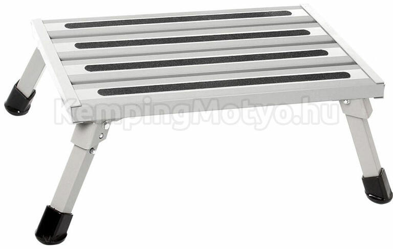 Nagyon stabil fellépő kihajtható lábakkal. Robosztus felépítés, anyaga porszórt alumínium. Nagy stabilitás, nagy és csúszásmentes felület jellemzi. Jellemzői:Anyaga porszórt alumínium. Nyitott mérete 47,5x30x23 cm. Összecsukott mérete 47,5x30x7 cm. Teherbírása 120 kg. Súlya 2,65 kg.