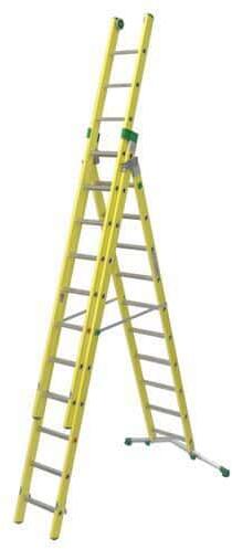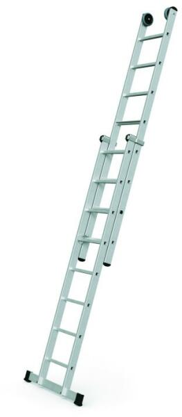 Üveglaminát két részes létra a fokozott kockázatú elektromos kisüléses üzemekbe alkalmas. A létra tanúsítvánnyal rendelkezik, és megfelel az EN 131 és az EN 61478 szabványoknak, I. kategória - 30.000 Volt. Összeállítható álló kettes létraként vagy kitolható és támasztó létraként. Stabilizációs teleszkópos 83 cm – 128 cm széles bázis, műanyag csúszásgátló