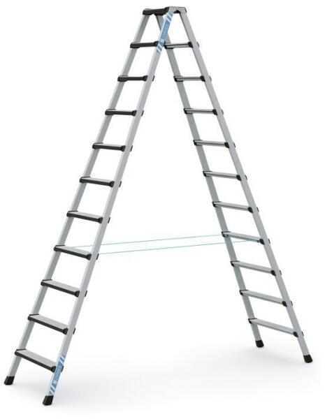 "A sípcsontot kímélő fel-/lemászás, valamint esztétikai optika nagy munkakényelemről és rugalmas alkalmazási lehetőségekről gondoskodnak. Mély fokok párnázott elülső éllel a kényelmes álláshoz. 80 mm mély lépcsők párnázott elülső élekkel. Létraszárak kopásálló eloxált alumíniumból. Szétcsúszást gátló nagy szakítószilárdságú perlon gurtnival szerelve