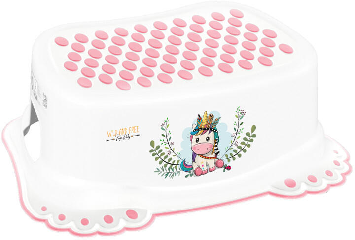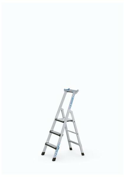 "A sípcsont kímélése: magas munkakényelem a párnázott fokok révén. Mély fokok párnázott elülső éllel a kényelmes álláshoz. Nagyméretű állófelület a biztonságos és kényelmes álláshoz a hosszan tartó munkáknál is. 80 mm mély lépcsők párnázott elülső élekkel. Létraszárak kopásálló eloxált alumíniumból. Az állólap húzott alumínium profilból (300 mm×