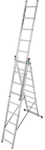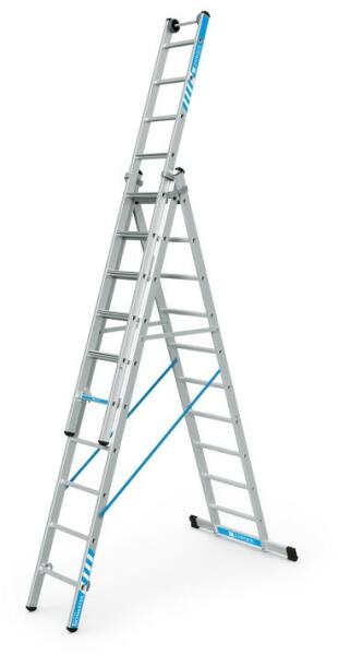 "Egy létra, számos funkció: rugalmas megoldás a biztonságos fel-/lemászáshoz, valamint extra stabil állás, különösen kényelmes és rendkívül biztonságos a 80 mm mély lépcsőknek köszönhetően a felső létrán. Rendkívül könnyű a létrafokos és lépcsős létra kombinációjának köszönhetően (hibrid szerkezet). Nagyfokú biztonság a kétoldali merev összekötőnek k