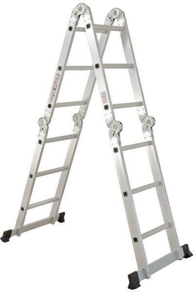 Könnyen tárolható alumínium létraszett. A lépcsőfokok lehetővé teszik a TRBS 2121-2 szabványnak megfelelő munkahelyként való alkalmazást. A préselt alumínium profilból készült szárak további sarokmerevítéssel nagy stabilitást és hosszú élettartamot biztosítanak. Nagy szilárdságú peremezett kapcsolat a létrafokok és a szár között. A létra alsó tagja széles kie