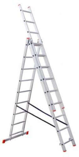 Könnyű és masszív alumíniumból készült minőségi kétágú létra, mely tovább tolható, így nagy magasságokba felérhetünk vele. Egyoldalas három részes széttolható támasztó létrának is használható. A harmadik kitolható rész a kétágú rész bármelyik fokán megrögzíthető, így tetszőlege magasságot lehet beállítani. Az extra széles támasztó talpnak köszönhe