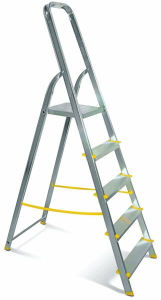 Alumínium létra. Teherbírás: 150 kg. Csúszásgátló gumitalppal. 5 fokos