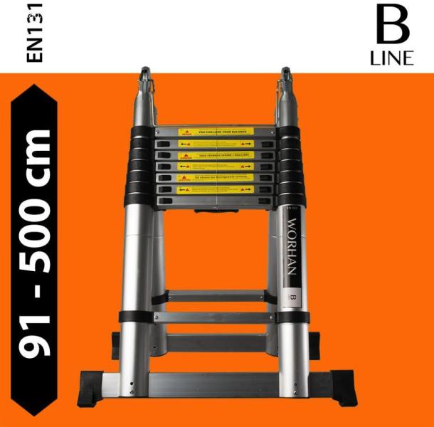 Alumínium teleszkópos létra a BORMANN PRO-tól Kiváló minőségű 6063 alumíniumból készült, korrózióálló Teleszkópos 1,9m + 1,9m, lágy záródás Megerősített csúszásgátló rúd 86cm Lépcsők száma: 12 Maximális teherbírás kg: 150