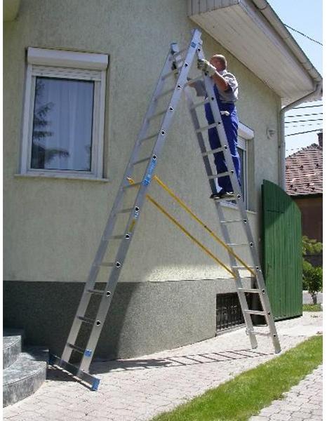 Kedvező árú változat az univerzális alkalmazáshoz toló- és állólétraként. Használható két részes tolólétraként vagy két oldalon járható létraként. A szétcsúszást megakadályozzák az erős perlon gurtnik. Nagy állásbiztonság a két különösen széles gerendának köszönhetően. Stabil delta alakú fokok húzott alumínium profilból, használatkor vízszintes pozí