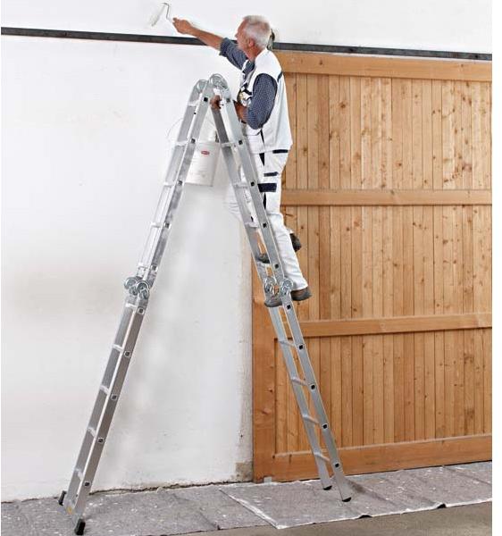 Két oldalon járható állólétra Csúszásgátló bordázattal Extra könnyű Teherbírás max. 150 kg Munkamagasság: 260 cm