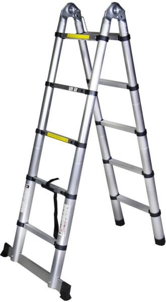 JellemzőkBISONTE STR3032 két oldalon járható teleszkópos állólétra alumíniumból, egyszerűen és könnyen, fokonként két gomb egyidejű lenyomásával összetolható. Az EN131 biztonsági szabványnak megfelelően, a maximális terhelhetőség 150 kg. Műszaki adatokFokok száma 2x5Létra szélesség 0,52 mÖsszetolt létra magassága 0,88 mÁllólétra magassága 1,56 mTámasztólétr
