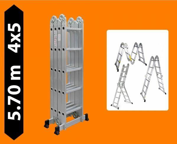 Csukló létra Adatok: Csuklós kombinált létra 4x5 létrafok Kinyitva: 570 cm Összecsukva: 150 cm Teherbírás: 150 kg Tanúsítvány: EN131 Támasztólábak szélessége: 700 mm Talpak anyaga: csúszásmentes gumi Súly: 15 kg Mérete: 146x36x29 cm További információk: Többfunkciós csuklós létra Elősegíti a munkát a magas vagy nehezen hozzáférhető helyeken is. Tökéletes beltér