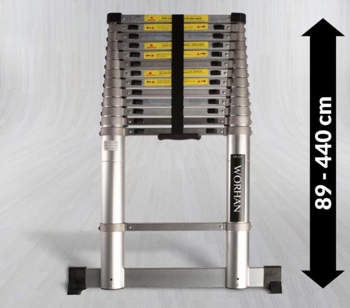 Teleszkópos létra Magasság kihúzva: 4,4 m Szélesség felül: 44 cm Szélesség alul 47 cm Szélesített támasztótalp szélessége 67 cm Belső szélesség 32 cm Összecsukva: 89 cm Súlya: csak 13,5 kg! Maximális teherbírás 150 kg Mindig győződjön meg a megfelelő dőlésszögről, és a biztonságos elhelyezésről, mielőtt fellép a létrára! További információk:Kihúzható tel