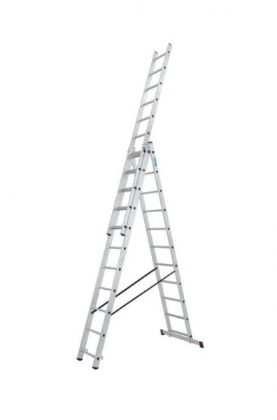 Corda univerzális sokcélú alumínium létra 3 x 9 fokos Háromrészes alumínium sokcélú létra, amely támasztó-, toló- és állólétraként is használható a kitolható létrarésszel. Könnyű, nagy teherbírás, csúszásgátló bordázott alu fokokkal, kétkomponensű lábd