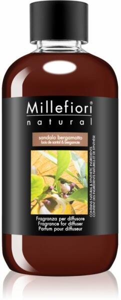 Millefiori Milano Sandalo Bergamotto, 250 ml, Töltetek aromadiffúzorba Illatok lakásba, Az különállóan is megvásárolható Millefiori Milano Sandalo Bergamotto utántöltővel minden helyiség illatát aktuális hangulata szerint változtathatja meg. Tulajdonságok: fás illat fűszeres aroma gyümölcsös illat Használata: Az utántöltőt a mellékelt útmutató szerint cserélje ki.