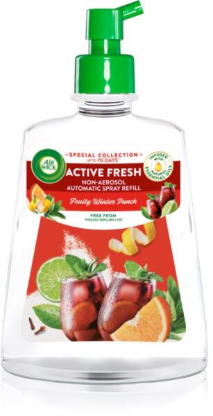 Air Wick Active Fresh Family Winter Punch, 228 ml, Légpárásítók Illatok lakásba, A helyiséget illatosító és kellemes atmoszférát teremtő Air Wick Active Fresh Family Winter Punch légfrissítő semlegesíti a szagokat és azonnali segítséget nyújt a kellemetlen szagok ellen folytatott otthoni küzdelemben. Tulajdonságok: gyümölcsös illat melengető illat karácsonyi aroma Össz