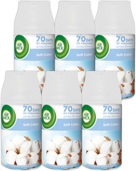 Air Wick Freshmatic Pure Friss Pamut automata légfrissítő spray utántöltő 250 ml Az otthon illata Az illatok széles választéka kapható Semlegesíti a szagokat és illatossá teszi otthonát Csak illat, nedvesség kicsapódása nélkül* Polcra tehető, de akár falra is akasztható, dekoratív Air Wick Freshmatic készülékhez Akár 60 napon keresztül folyamatosan kellemes illatot bizt
