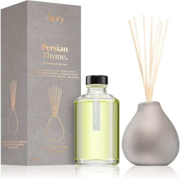 Aery Fernweh Persian Thyme, 200 ml, Diffúzorok töltettel Illatok lakásba, Az illatosító Aery Fernweh Persian Thyme aroma diffúzor a helyiségek illatosításnak igen kellemes módja. Tulajdonságok: keleties aroma Használata: Tartsa távol a gyermekektől. Amennyiben a diffúzor töltete a bőrrel érintkezik, azonnal mossa le bő vízzel és szappannal. Szembe jutás esetén öblítse néh