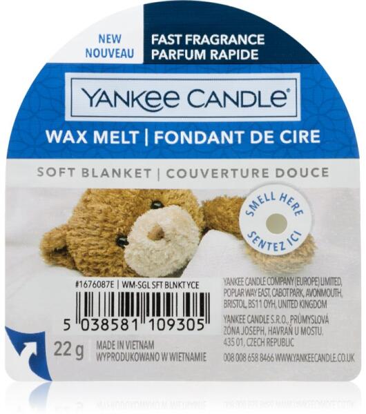 Yankee Candle Soft Blanket, 22 g, Viasz aromalámpába Illatok lakásba, A lehető legjobb illathatás Yankee Candle Soft Blanket aromalámpa viasszal érhető el a helyiségben. Mivel a viasz gyorsan és egyszerűen más illatú viaszra cserélhető, bármikor pontosan a hangulatához illő illatot varázsolhat maga köré. Tulajdonságok: friss illat Használata: Az aromalámpában olvadó viasz