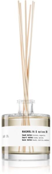 Ambientair Lab Co. Magnolia & Spices, 100 ml, Diffúzorok töltettel Illatok lakásba, Az illatosító Ambientair Lab Co. Amber & Clove aroma diffúzor a helyiségek illatosításnak igen kellemes módja. Használata: A helyiség illatának intenzitását a folyadékban lévő pálcikák időnkénti megfordításával is fokozhatja. Tartsa távol a gyermekektől. Amennyiben a diffúzor tö