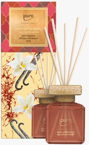Ipuro Vanilla Dream pálcás szobaillatosító 50 ml A nemes vanília és a finom sáfrány a két legértékesebb fűszer összetéveszthetetlen kombinációját hozza létre, és álmodozásra invitál. Ez a kiváló minõségű illat nemcsak az érzékeknek nyújt igazi élvezetet, hanem divatos formatervezésének köszönhetõen igazi szemet gyönyörködtetõ látvány is. Fej: vanília Szí
