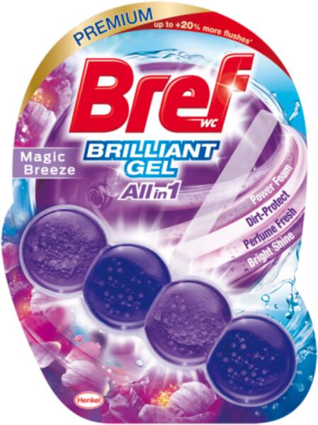 A Bref Brilliant WC illatosító gél egy prémium minőségű WC tisztítószer és illatosító, amely a WC frissítésére és tisztán tartására szolgál. Ez a termék különleges formulával rendelkezik, amely nemcsak tisztítja a WC-csészét, hanem hosszan tartó frissességet és ragyogást is biztosít. Jellemzők: K iváló minőségű tisztító hatás : Hatékonyan eltávolítja a s