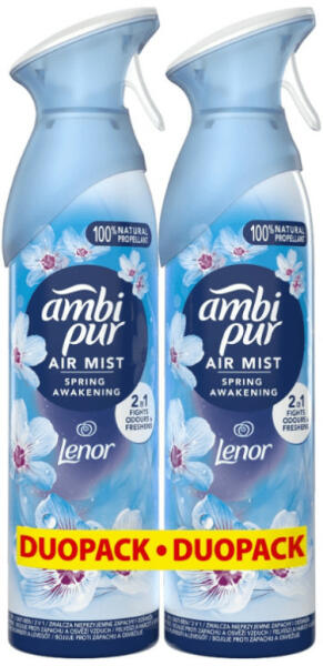 Ambi Pur Spring Awakening légfrissítő spray (2x185 ml) Az Ambi Pur légfrissítő Odourclear technológiája révén megszünteti a kellemetlen szagokat, és könnyed, friss illatot hagy maga után. A Spring Awakening könnyed, zöld illatát a Lenor természetes, tavaszi frissessége ihlette. Az Ambi Pur aeroszolos légfrissítők nem gyúlékonyak, hajtógázuk pedig teljes mértékben termé