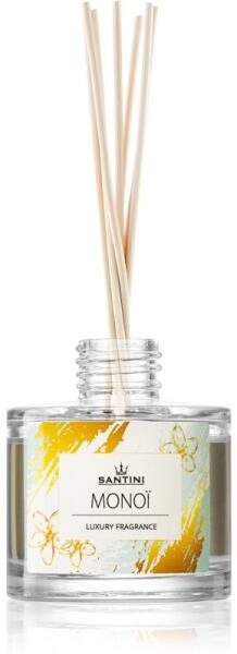SANTINI Cosmetic Monoï, 100 ml, Diffúzorok töltettel Illatok lakásba, Az illatosító SANTINI Cosmetic Monoï aroma diffúzor a helyiségek illatosításnak igen kellemes módja. Tulajdonságok: virágos illat nyári illat Használata: Nyissa ki az aroma diffúzor fedelét és öntse bele a töltetet. Az aroma diffúzorból az illat a belé helyezett pálcikák segítségével fokozatosan szab