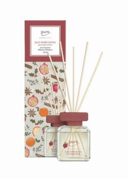 Ipuro téli bogyók illatú pálcás szobaillatosító 50 ml Az aromás bogyós jegyek, a lédús gránátalma és a melengetõ fűszerek, mint a fahéj és a szegfűszeg egészítik ki a gyümölcsös, téli álmokat. Fej: gránátalma, szõlõ Szív: fekete ribizli, narancsvirág, virág akkordok Alap: szegfűszeg, fahéj Használati útmutató: Nyissa ki az illatosítót, állítsa bele a pálc