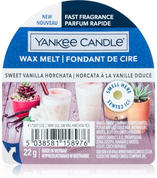 Yankee Candle Sweet Vanilla Horchata, 22 g, Viasz aromalámpába Illatok lakásba, A lehető legjobb illathatás Yankee Candle Sweet Vanilla Horchata aromalámpa viasszal érhető el a helyiségben. Mivel a viasz gyorsan és egyszerűen más illatú viaszra cserélhető, bármikor pontosan a hangulatához illő illatot varázsolhat maga köré. Használata: Az aromalámpában olvadó viaszt soha n