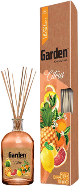 A Garden pálcikás illatosító Citrus frissítő citrusos illatával energiát és tisztaságérzetet hoz otthonába vagy munkahelyére. A természetes pálcikák finoman párologtatják az illóolajat, hosszan tartó, harmonikus illatkörnyezetet biztosítva. Ideális választás azoknak, akik diszkrét, mégis hatékony légfrissítőt keresnek. A Garden Citrus illatú pálcikás illatosító