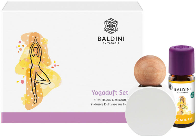 A csomag tartalma 10 ml Baldini "Jóga" illlatkeverék 100 % természetes tiszta illóolajokból és egy fehér, bükkfából készült illatváza a szabadalmaztatott fagolyóval, melyet a üvegcsébe helyezve a illat magától árad szét a térben. A Baldini "Yoga" illatkeverék grapefruittal, zsályával, pacsulival és szantállal, a tiszta gondolatok és frissesség illata. A csomag tartalma