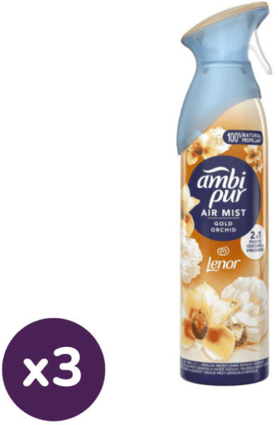 Az Ambi Pur légfrissítő Odourclear technológiája révén megszünteti a kellemetlen szagokat és könnyed, friss illatot hagy maga után. Fedezze fel a Gold Orchid lágy illatát, amely az egzotikus virágok páratlan illatkeverékére és a természet finom harmóniájára épül. Ambi Pur Gold Orchid légfrissítő spray (3x185 ml) Az Ambi Pur aeroszolos légfrissítők nem gyúlékonyak, h