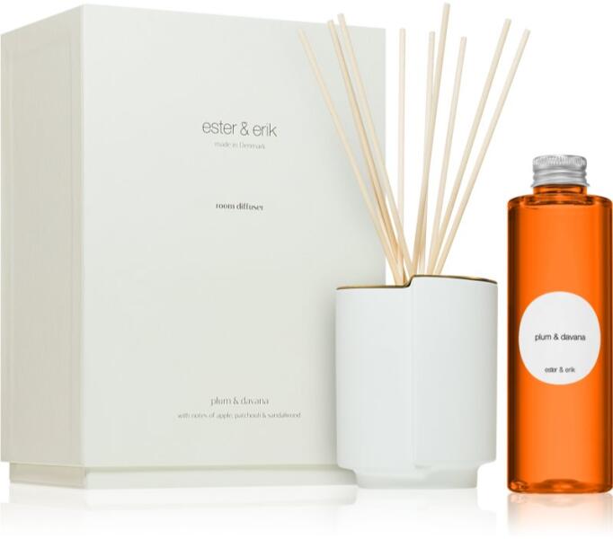ester & erik plum & davana, 200 ml, Diffúzorok töltettel Illatok lakásba, Az illatosító ester & erik aroma diffúzor a helyiségek illatosításnak igen kellemes módja. Használata: A helyiség illatának intenzitását a folyadékban lévő pálcikák időnkénti megfordításával is fokozhatja. Tartsa távol a gyermekektől. Amennyiben a diffúzor töltete a bőrrel érintkezi