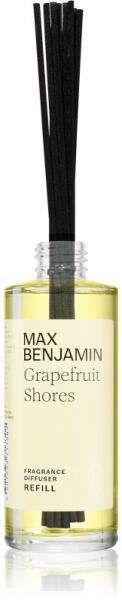 MAX Benjamin Grapefruit Shores, 150 ml, Töltetek aromadiffúzorba Illatok lakásba, Az különállóan is megvásárolható MAX Benjamin Grapefruit Shores utántöltővel minden helyiség illatát aktuális hangulata szerint változtathatja meg. Tulajdonságok: friss illat vegán termék Használata: Az utántöltőt a mellékelt útmutató szerint cserélje ki.