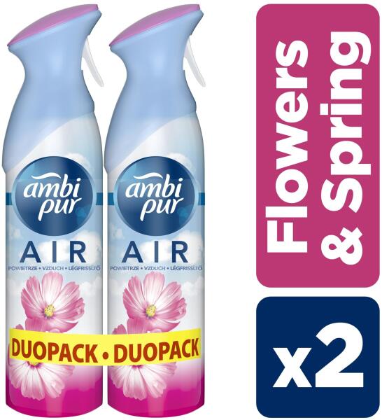 LÉGFRISSÍTŐ AEROSOL 2 X 300 ML DUOPACK AMBI PUR FLOWER&SPRING Az Ambi Pur aeroszolos légfrissítő „OdourClear technológiája révén megszünteti a makacsul beivódott szagokat, és kellemesen friss illatot hagy maga után. Míg más légfrissítők csupán elfedik a kellemetlen szagokat, az Ambi Pur ténylegesen megszünteti azokat, így Önt és vendégeit mindig finom illat fogadja.