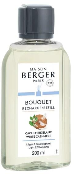 Hozzon kellemes, tiszta illatot otthonába a Maison Berger Paris francia márka White Cashmere parfümjével, amely aromadiffúzorokhoz készült. Az illat ideális a pihenés pillanataihoz. A parfüm fejét bergamott, vízi jegyek és fás kasmír alkotja. A szív a narancsvirág, a jázmin és az ilang-ilang virágillatából áll. A parfüm alapja pacsuli, szantálfa és fehér pézsma. Az illa