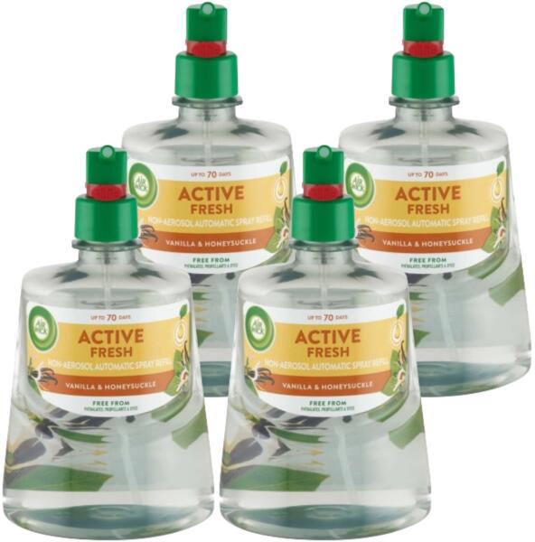 Az Air Wick 24/7 Active Fresh az Air Wick első aeroszolmentes és valaha volt legjobb automatikus légfrissítője. Legújabb szagsemlegesítőnk természetes illóolajokkal van átitatva a hosszan tartó illat érdekében, így megbirkózik a háziállatok szagával, és akár 70 napra elűzi a fürdőszobai szagokat és a konyhai kellemetlen szagokat. Jellemzői: - Kiszerelése: 4 x 228 ml - Az