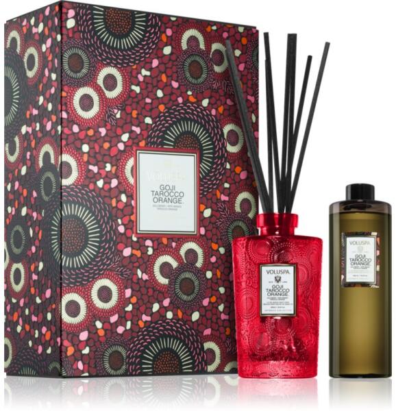 VOLUSPA Japonica Goji Tarocco Orange, 500 ml, Ajándékszettek Illatok lakásba, Az illatosító VOLUSPA Japonica French Cade Lavender aroma diffúzor a helyiségek illatosításnak igen kellemes módja. Használata: A helyiség illatának intenzitását a folyadékban lévő pálcikák időnkénti megfordításával is fokozhatja. Tartsa távol a gyermekektől. Amennyiben a diffúzor töltete a b